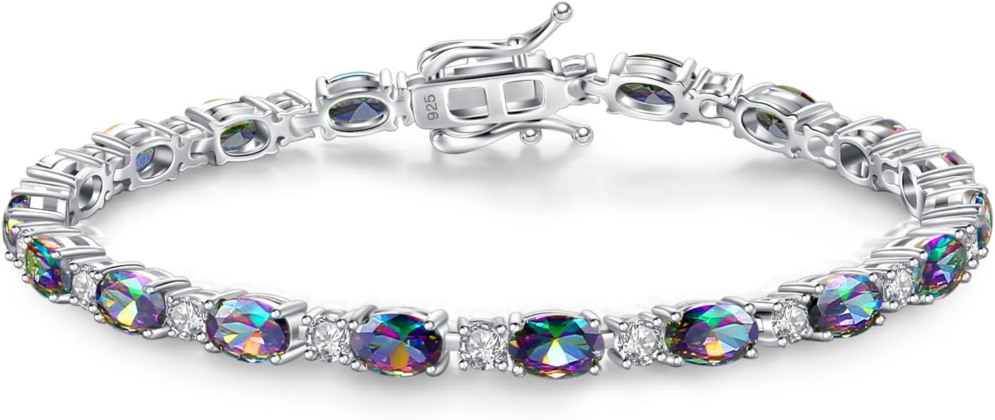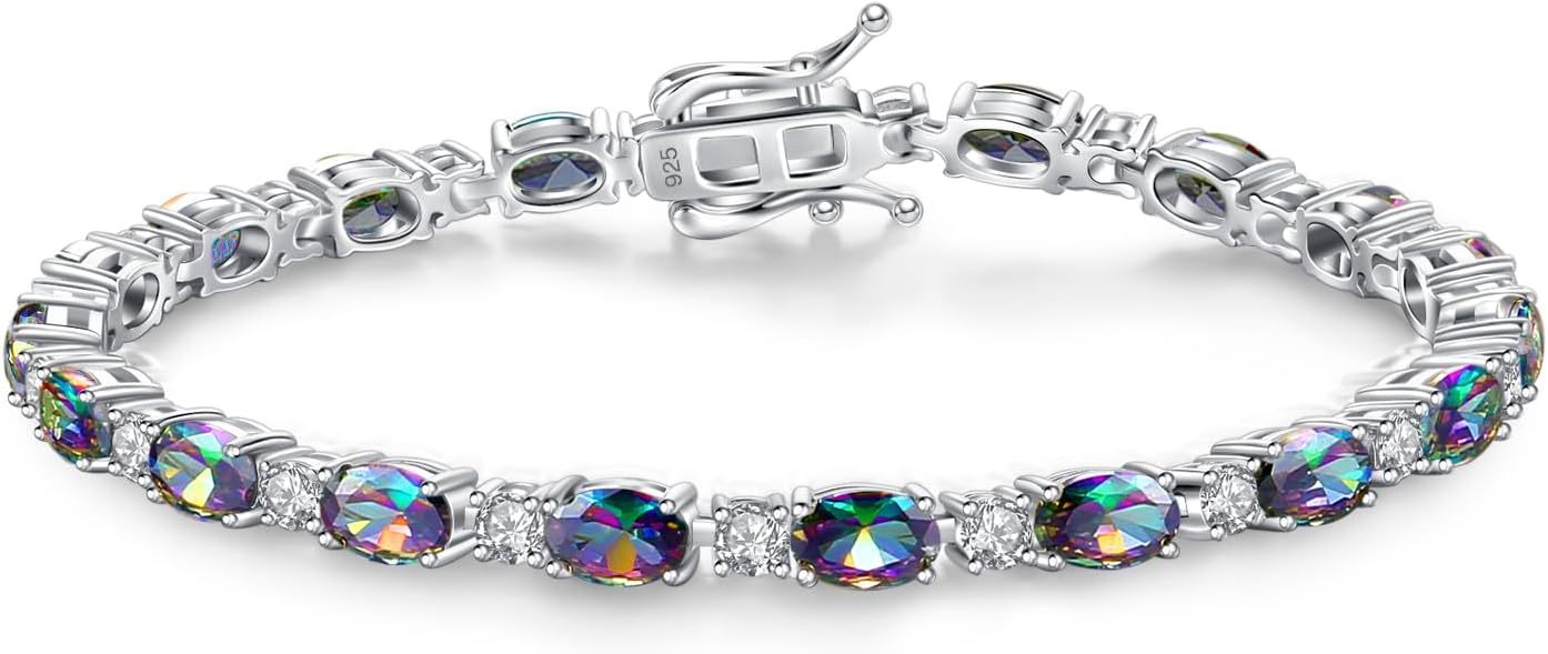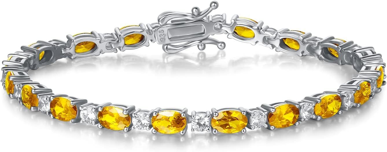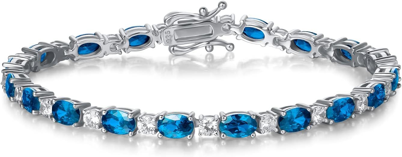 FANCIME Birthstone Bracelets Sterling Silver Tennis Bracelets Charm Fine Jewelry Mother's Day Birthday Gifts for Women Mom 7"