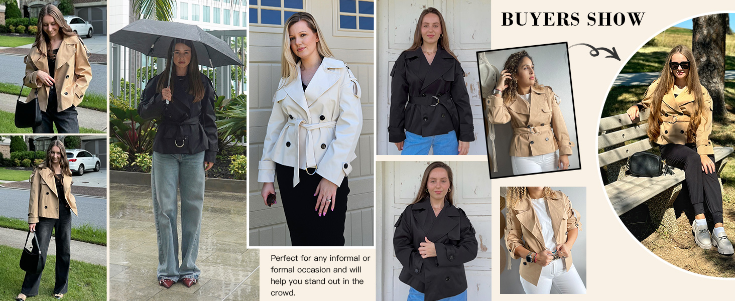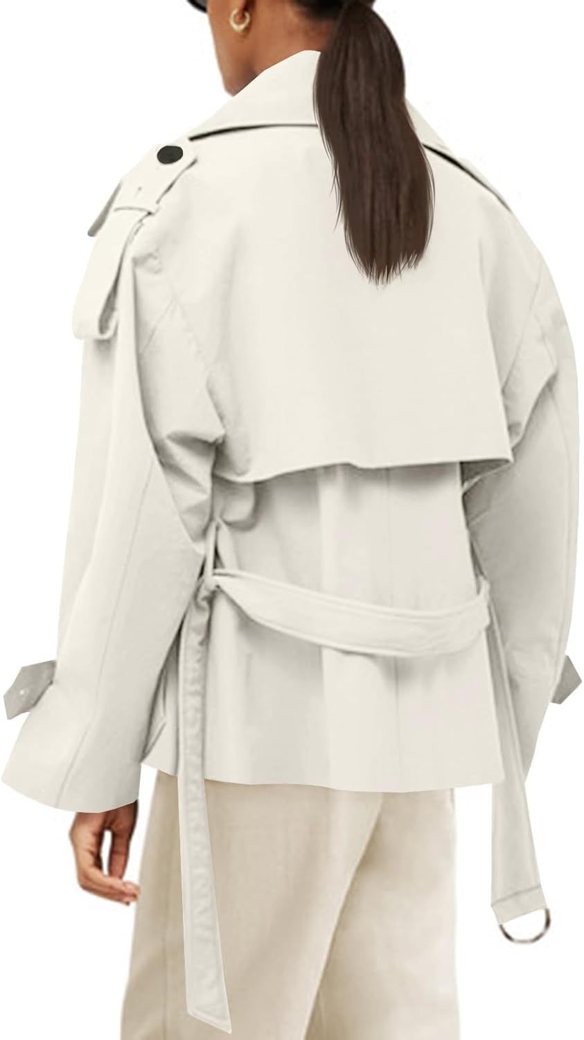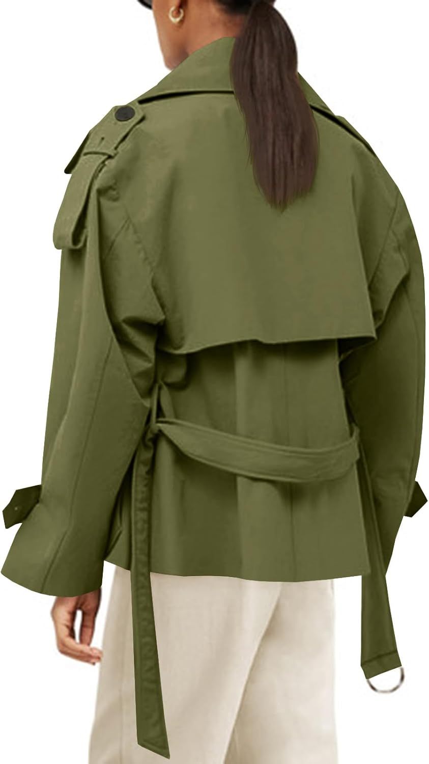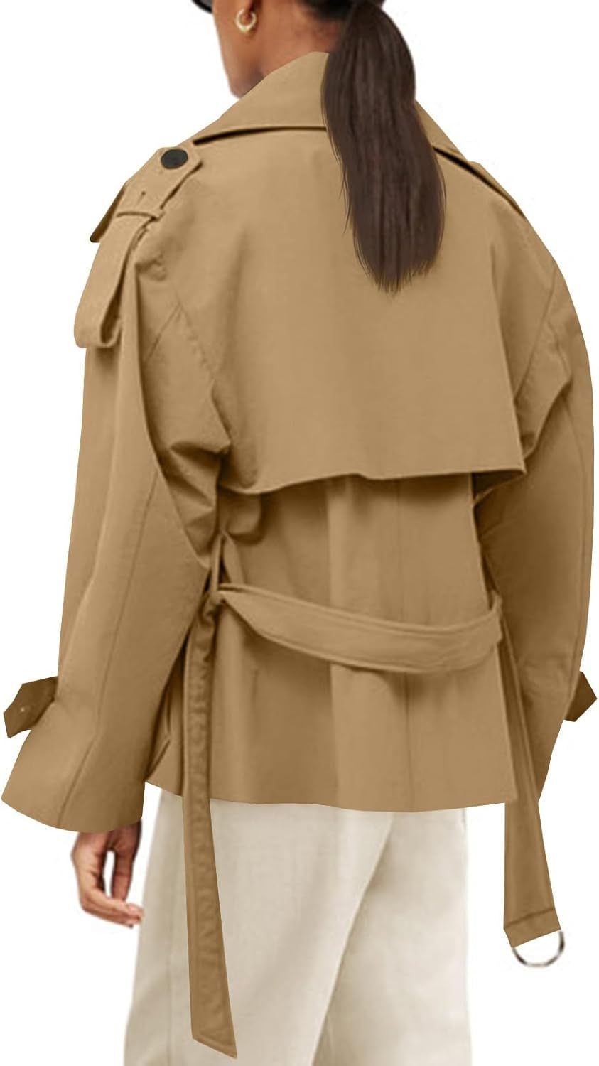 Tankaneo Womens Cropped Trench Coat Casual Double Breasted Short Jacket Fall Fashion Outerwear with Belt