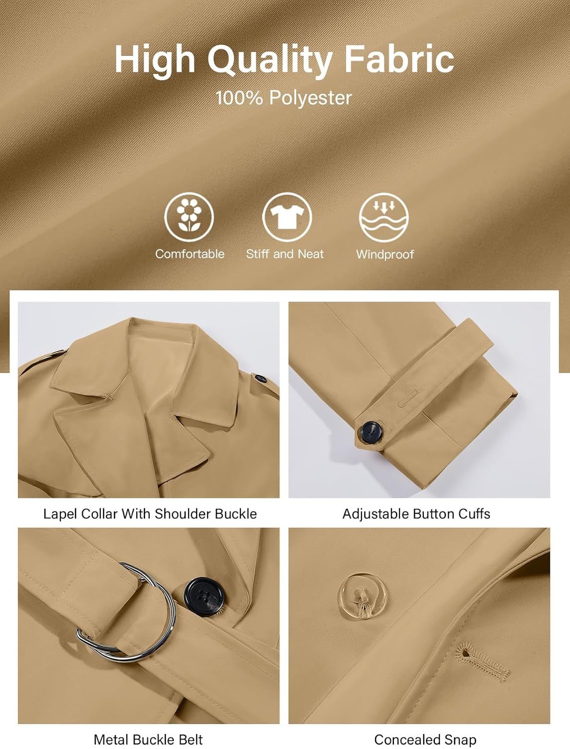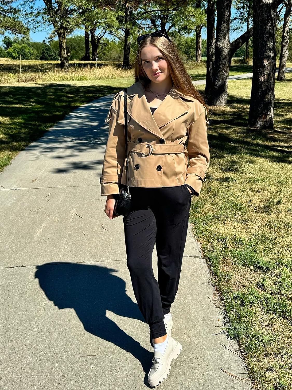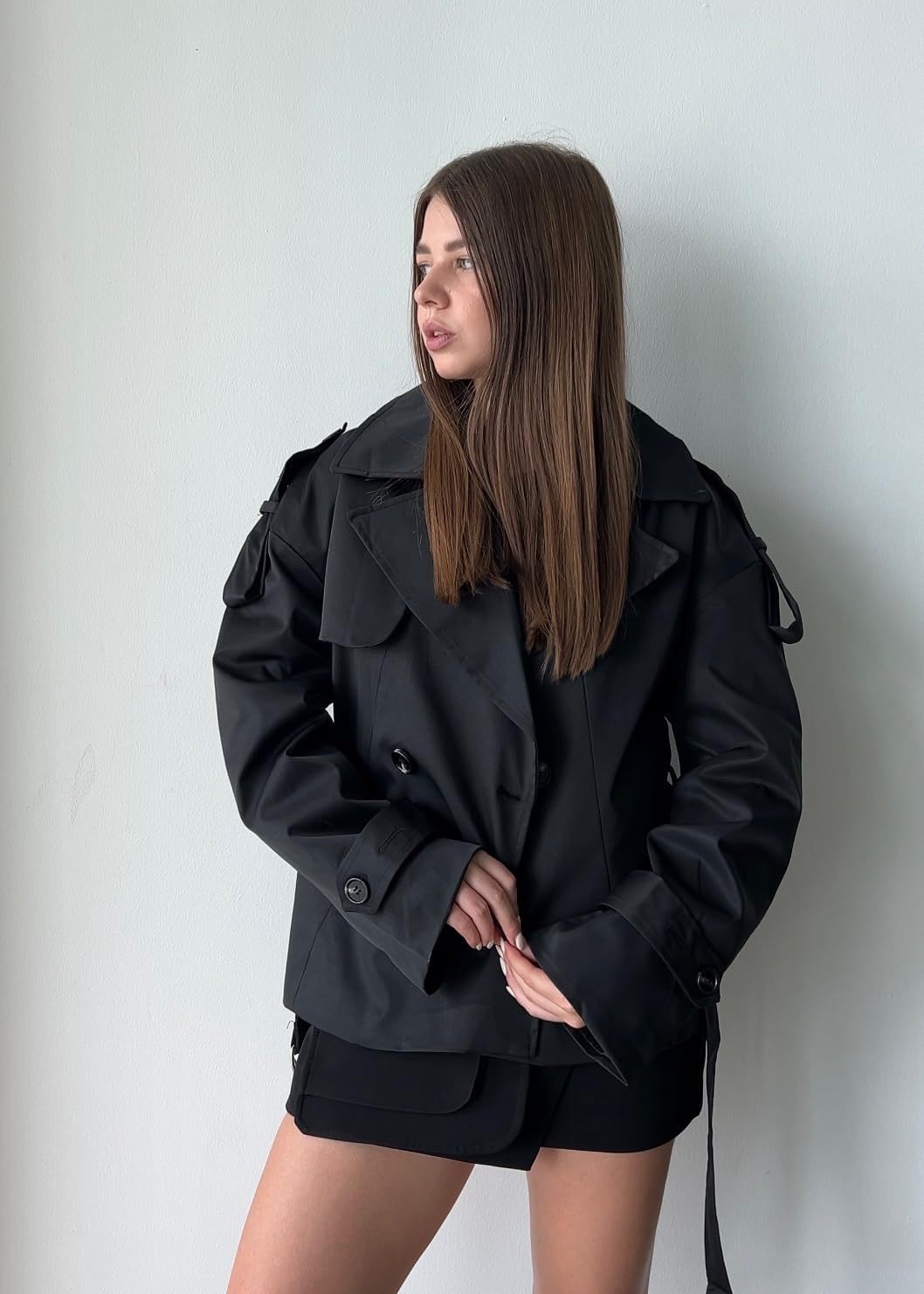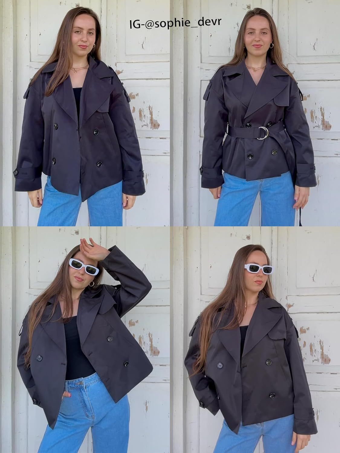 Tankaneo Womens Cropped Trench Coat Casual Double Breasted Short Jacket Fall Fashion Outerwear with Belt