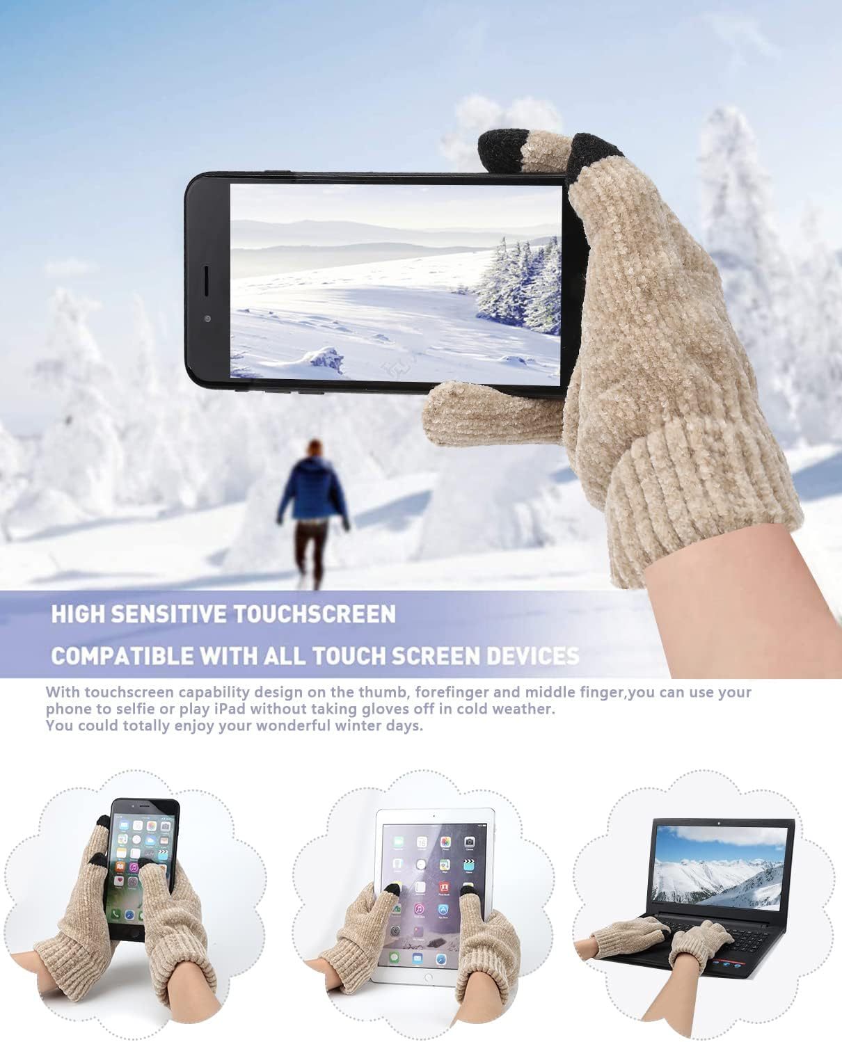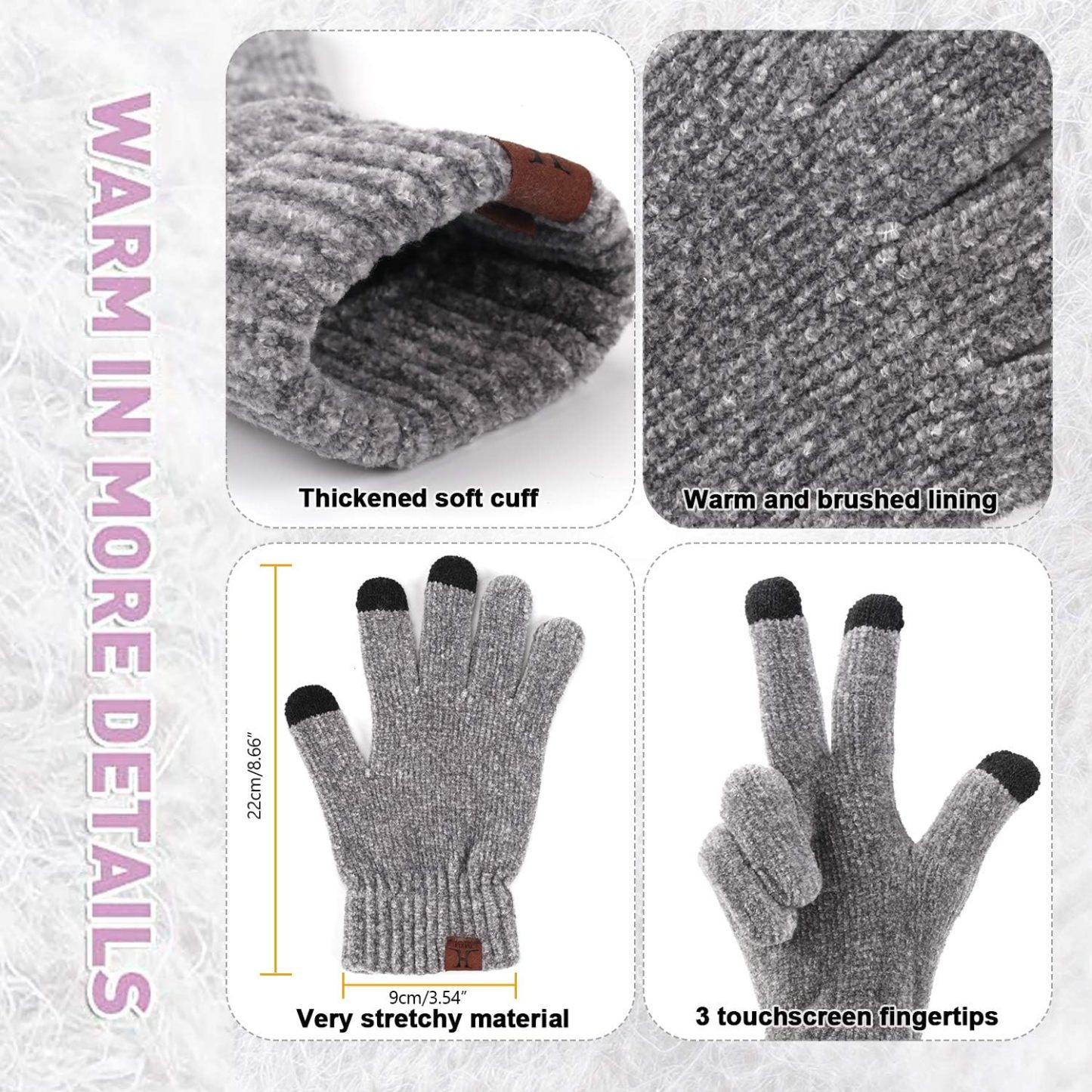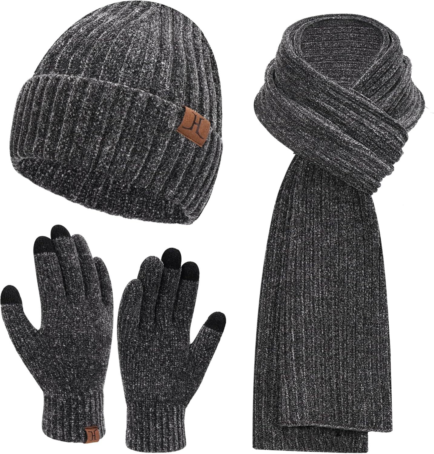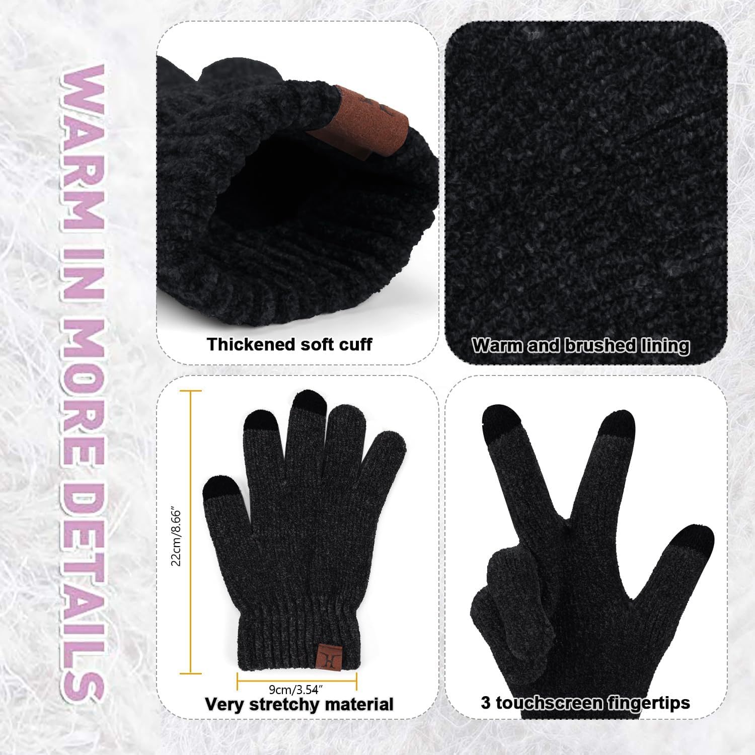 Womens Winter Knit Warm Hat Beanie Long Scarf Touch Screen Gloves Set Skull Caps Neck Scarves for Women