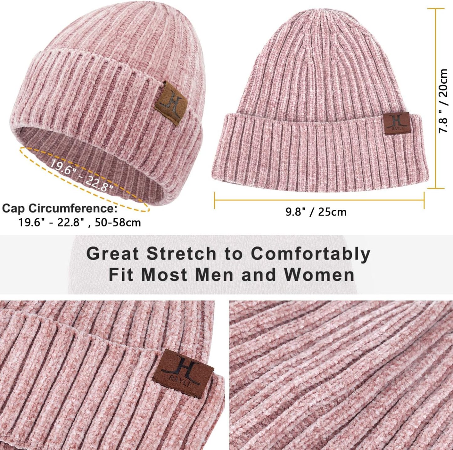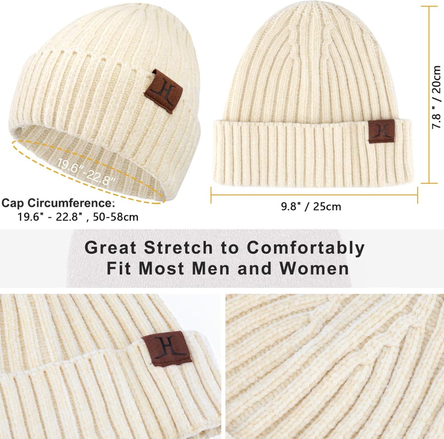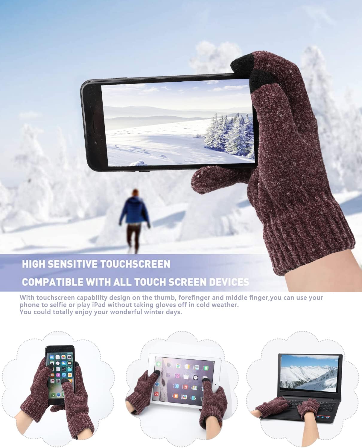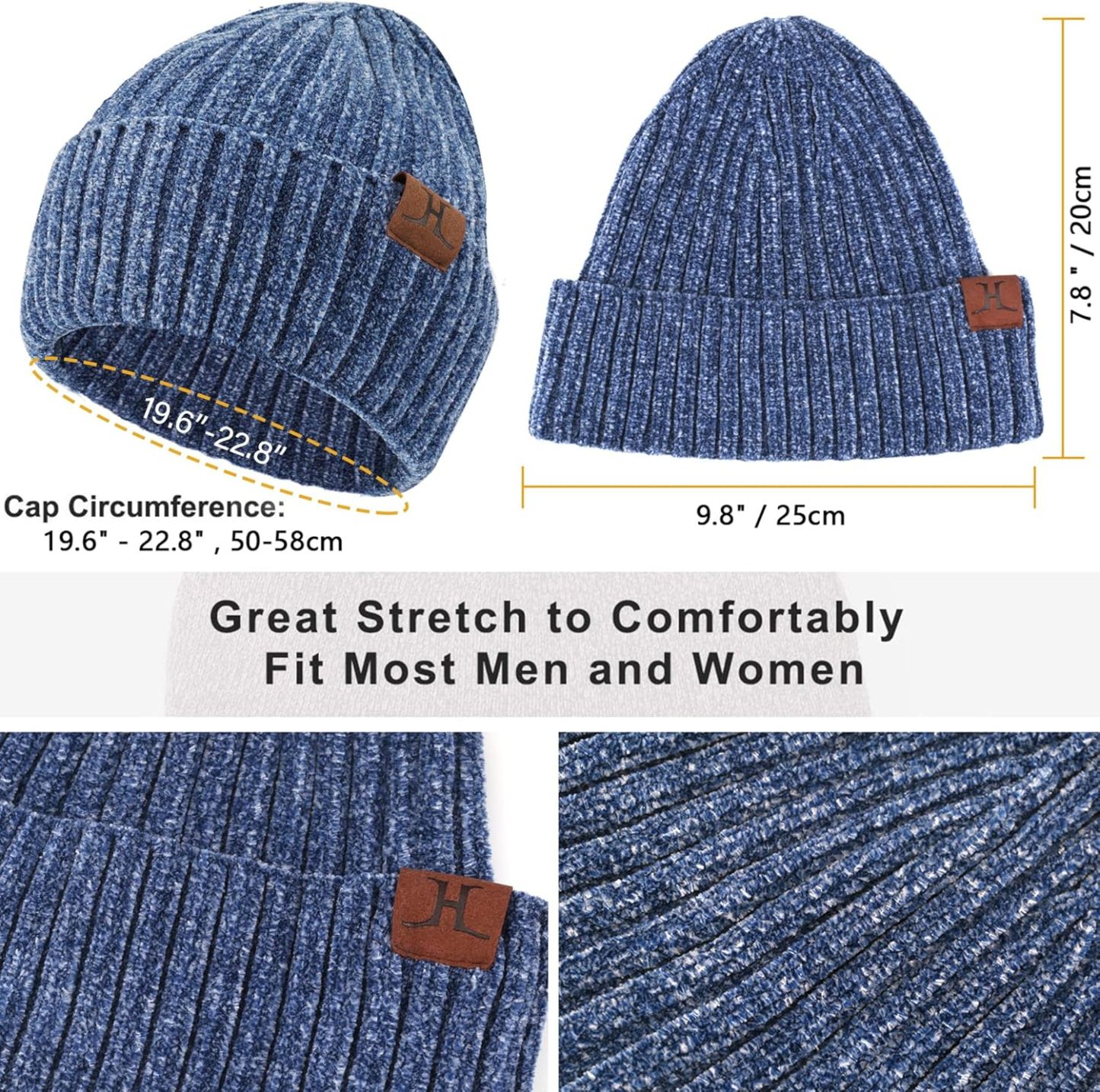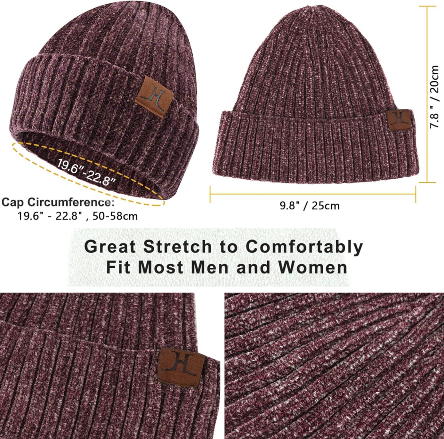 Womens Winter Knit Warm Hat Beanie Long Scarf Touch Screen Gloves Set Skull Caps Neck Scarves for Women